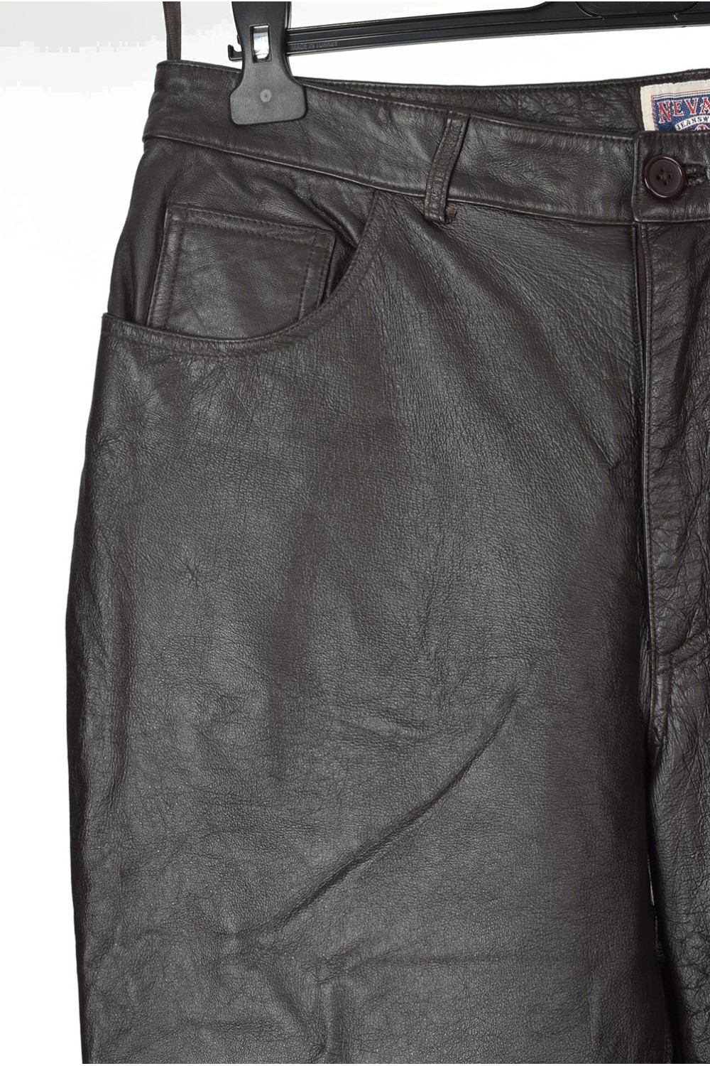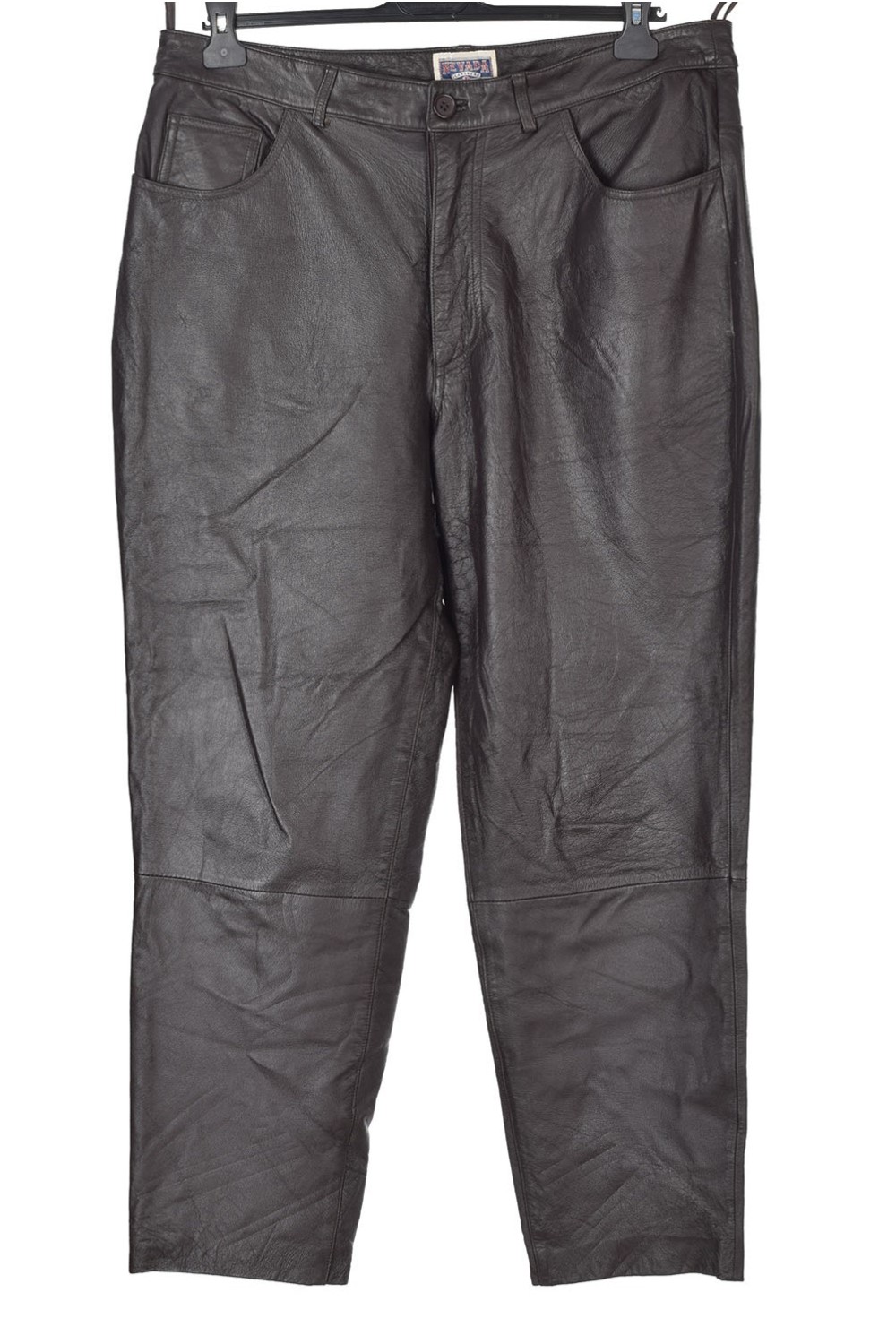 Pantalon de bărbați maro închis din piele naturală