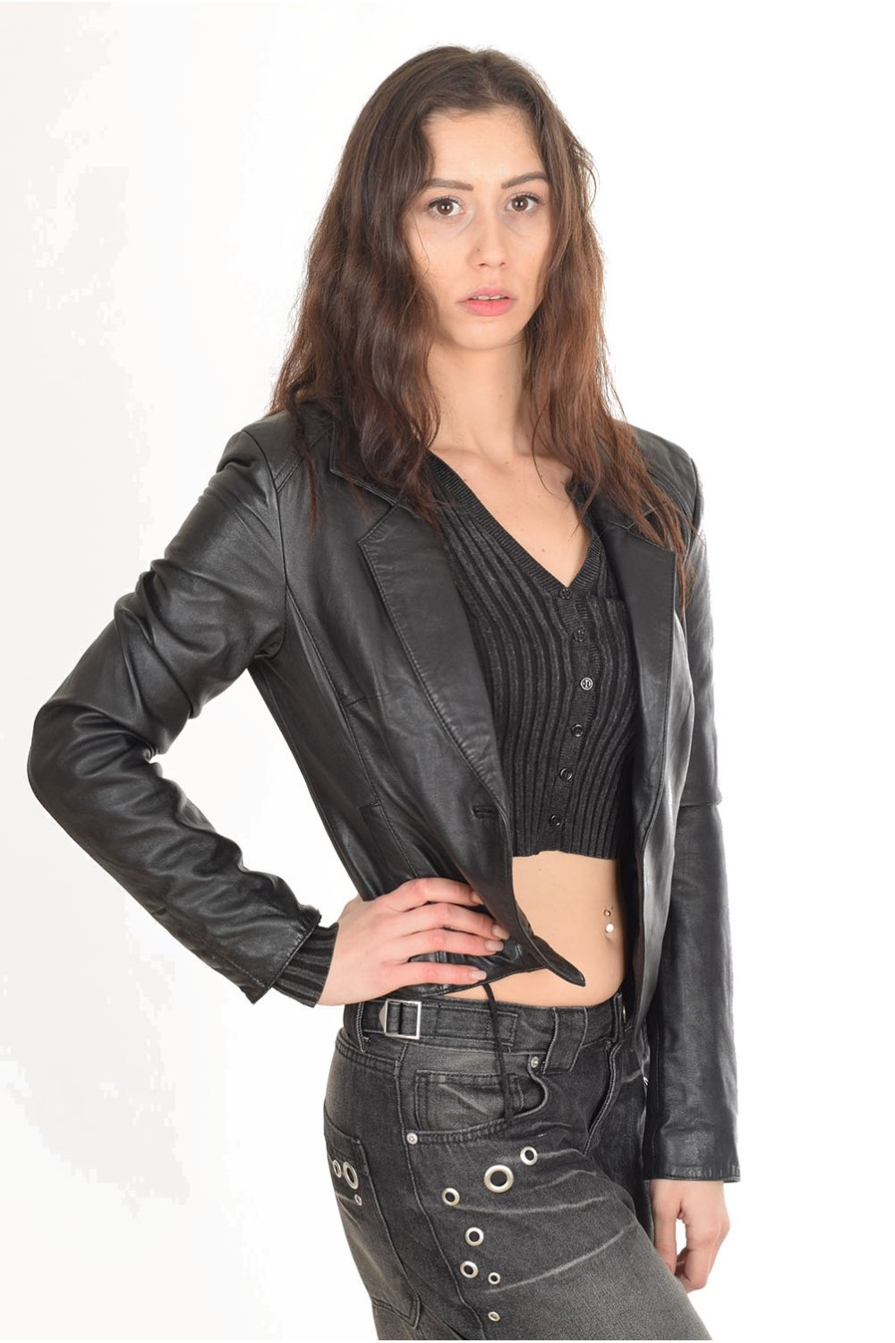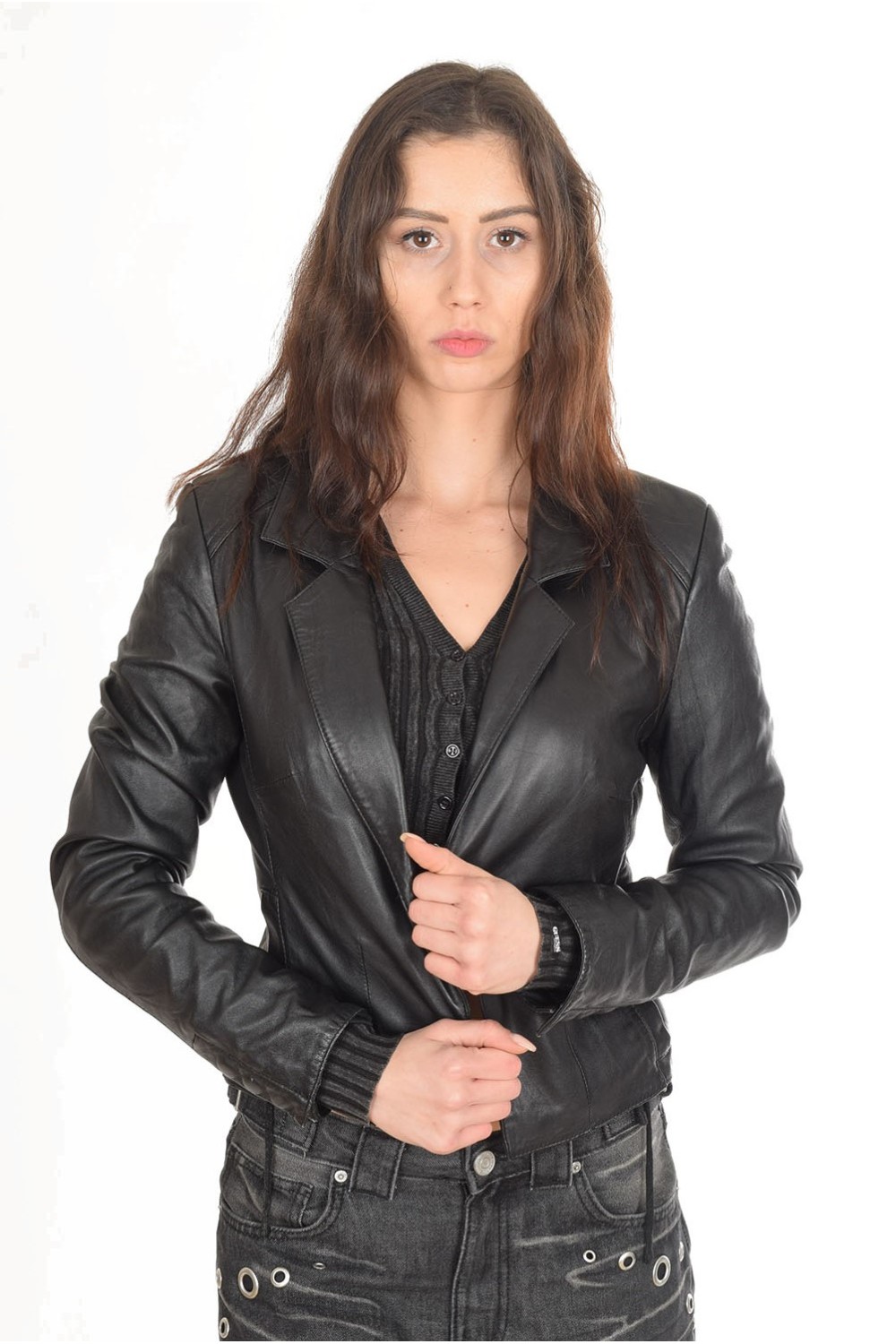 Geacă elegantă neagră din piele naturală