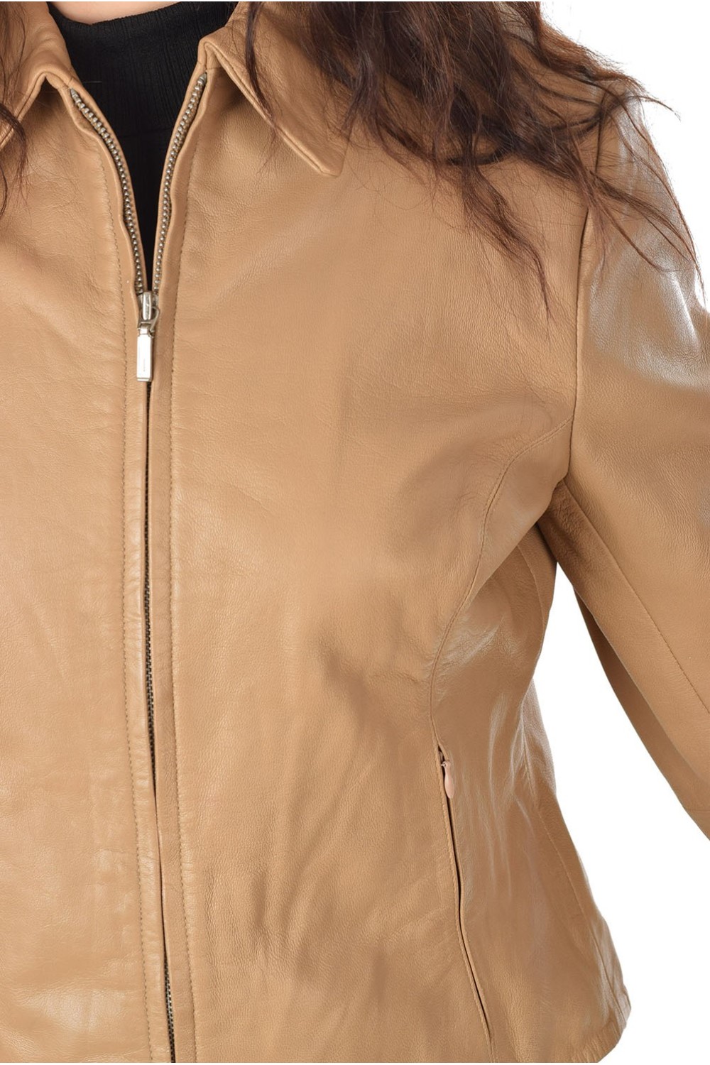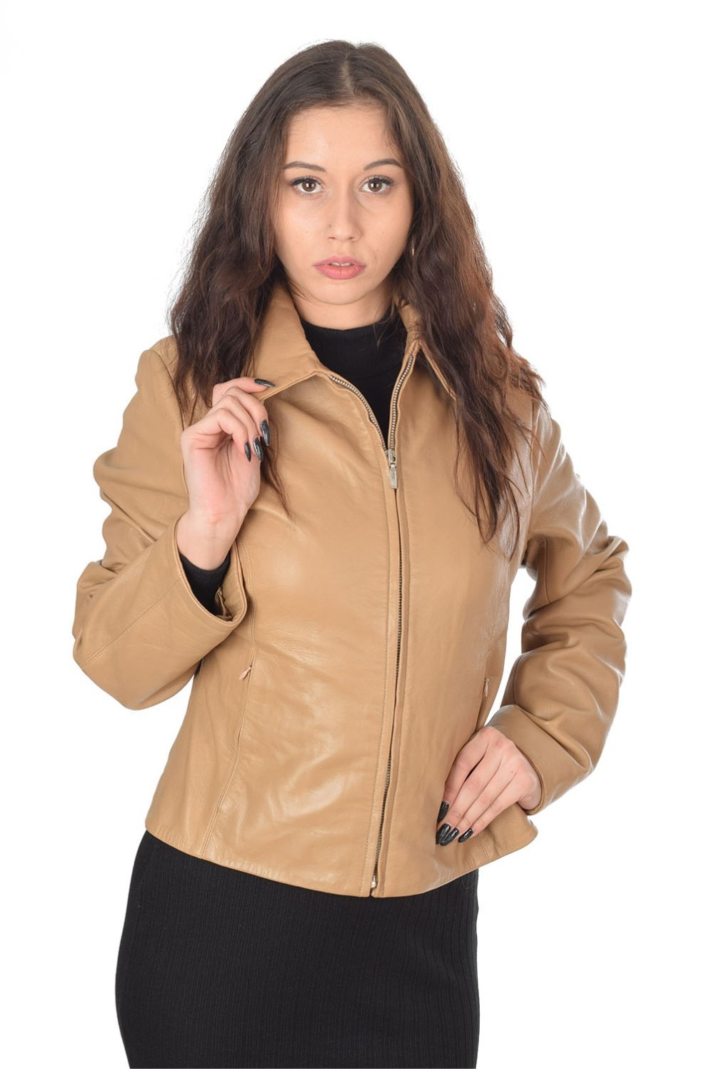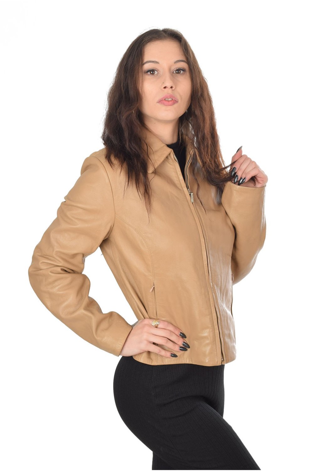 Geacă frumoasă bej din piele naturală