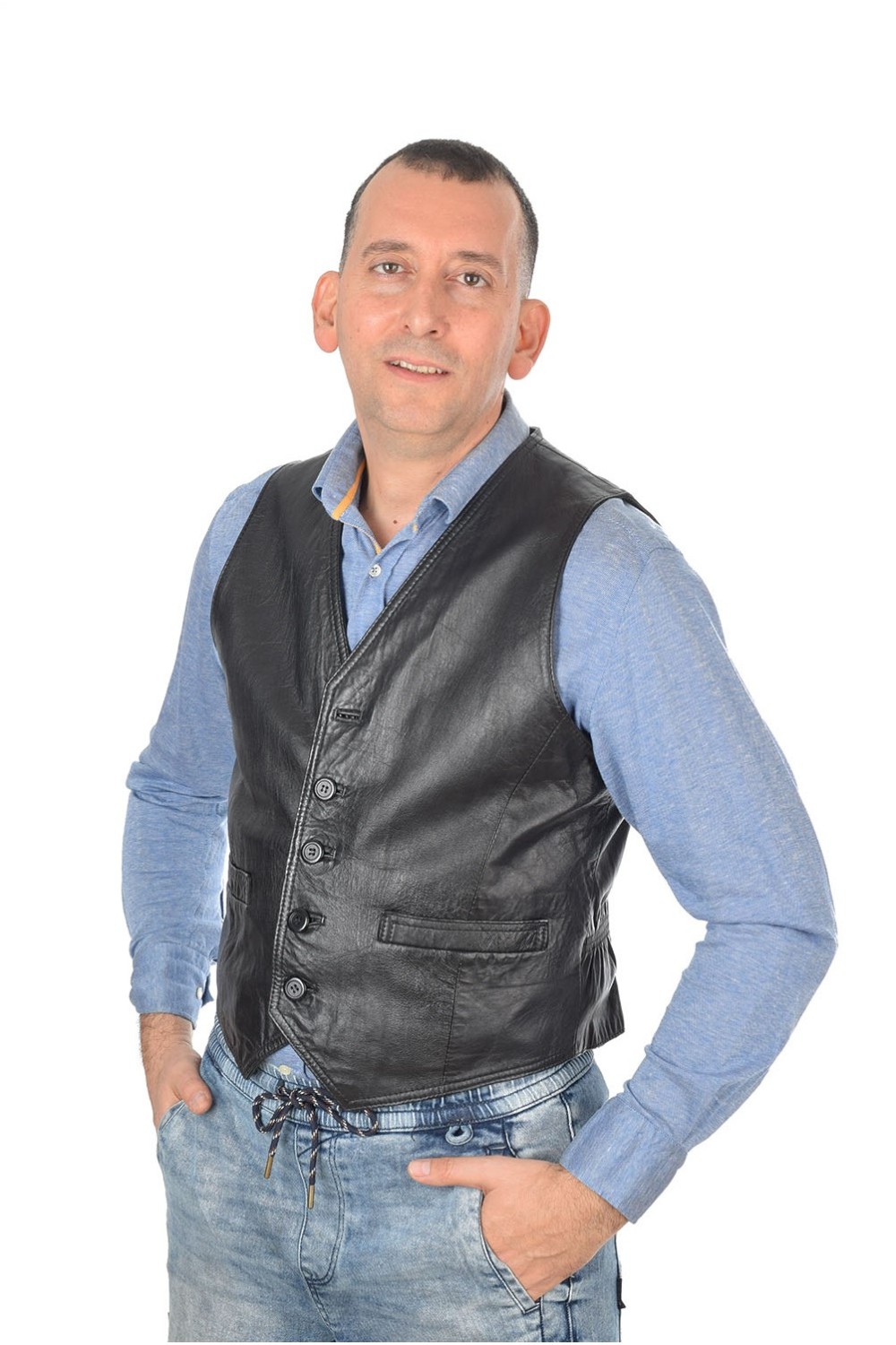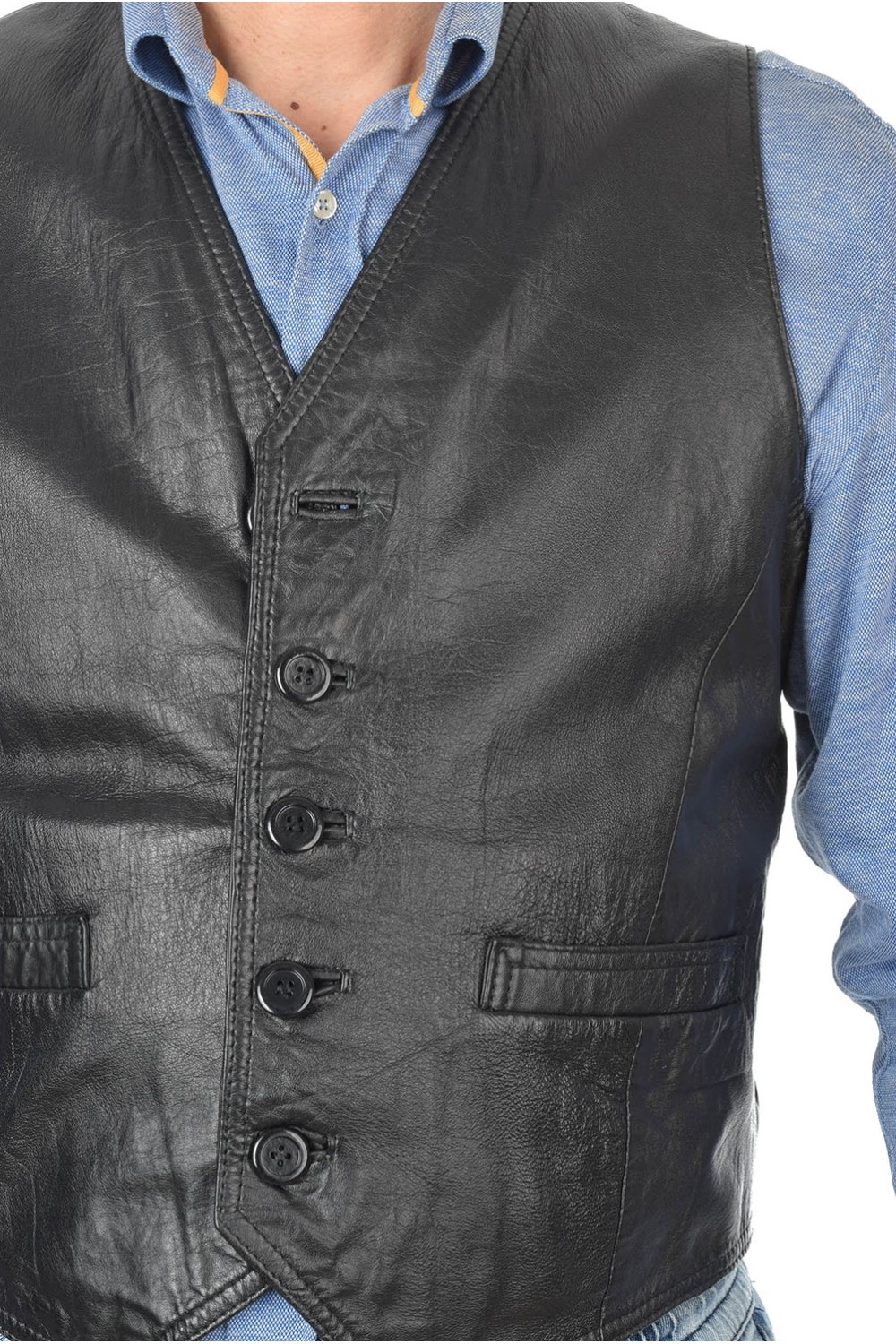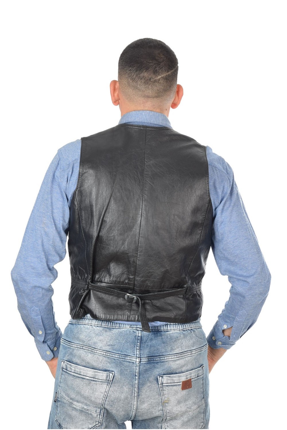 Vestă de bărbați neagră din piele naturală
