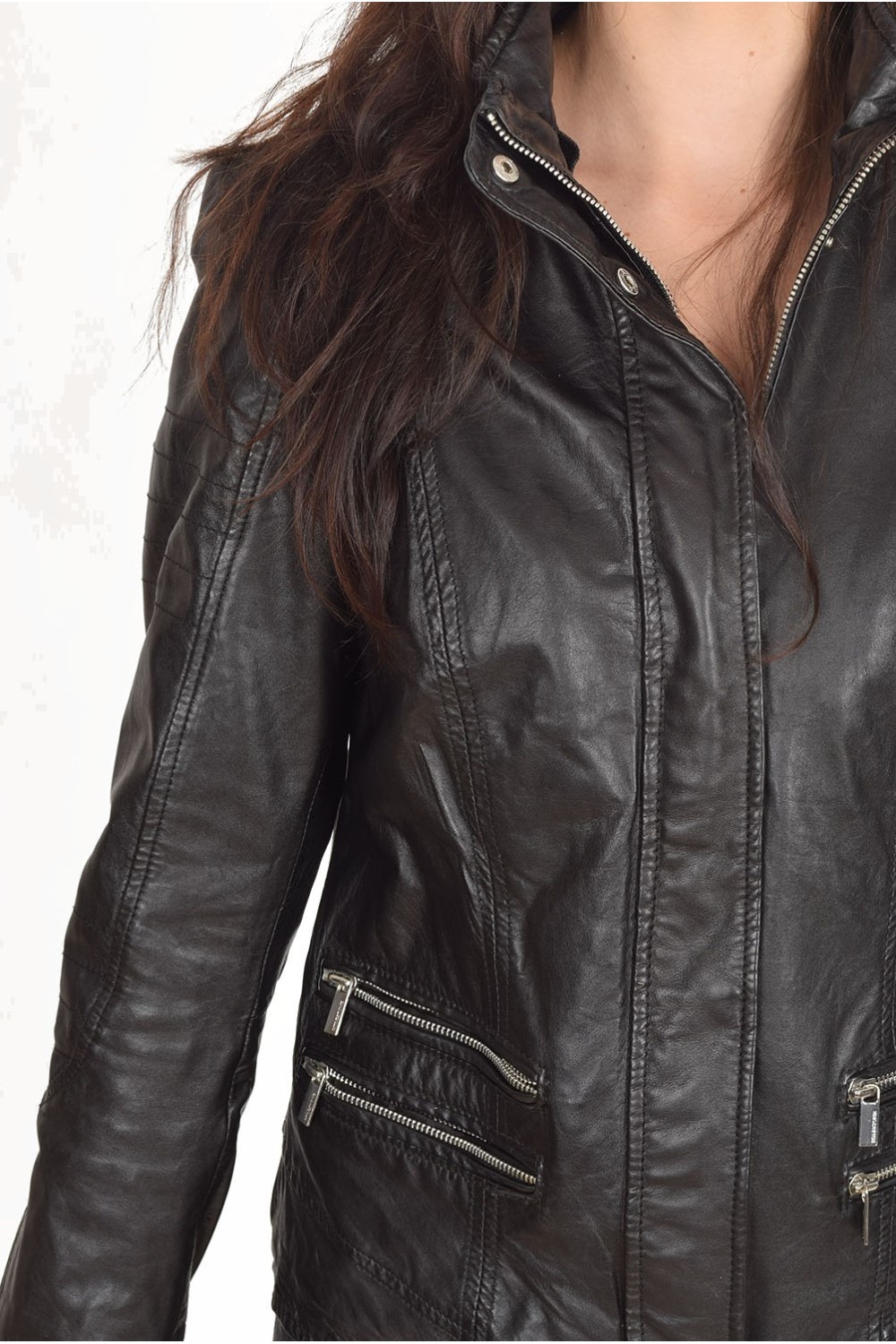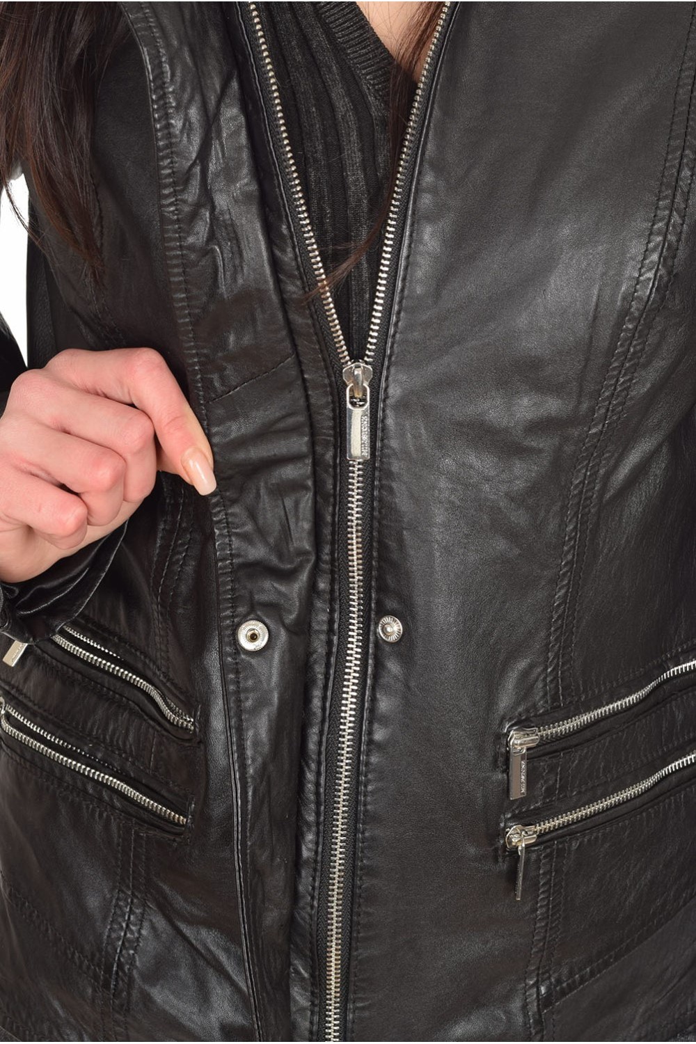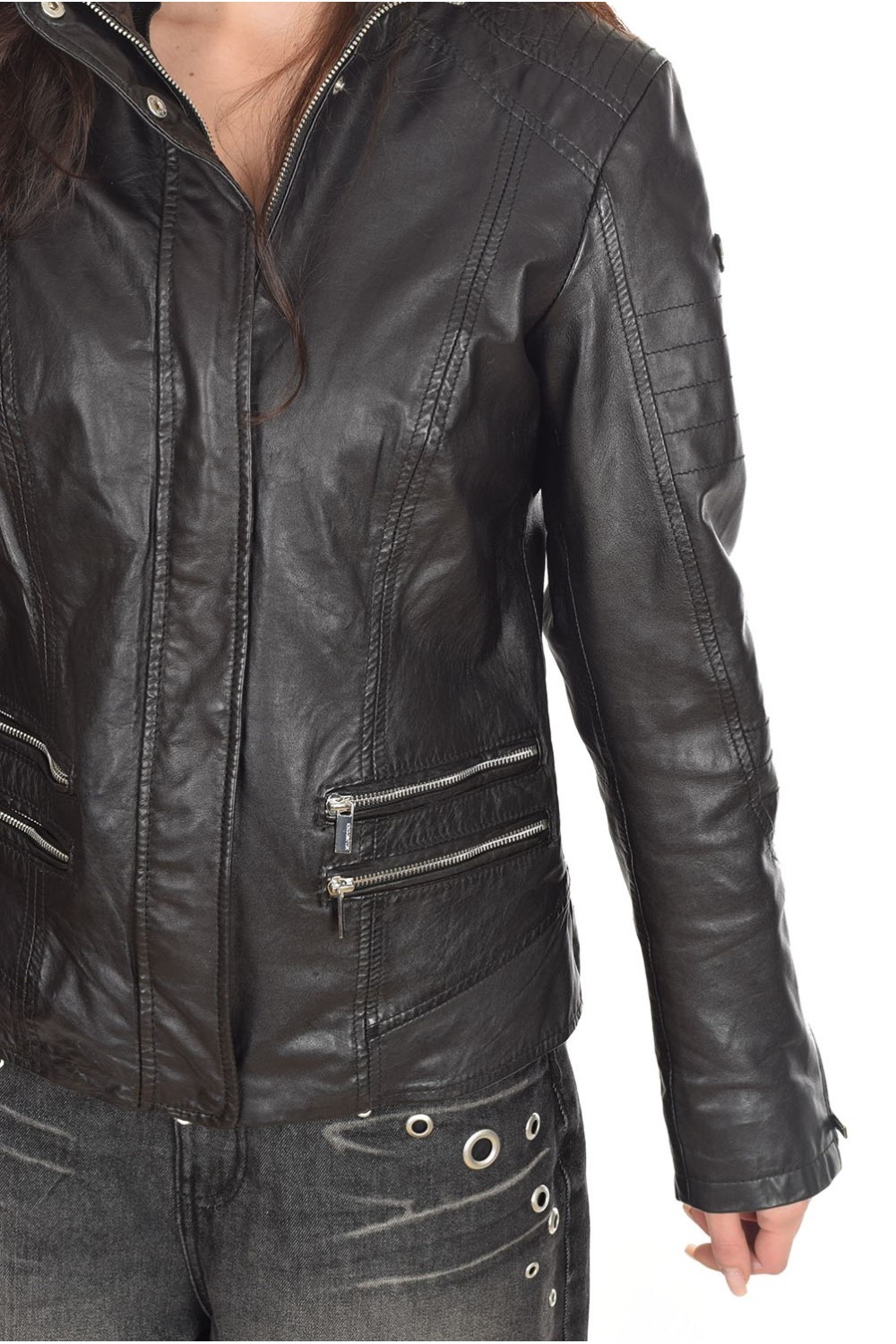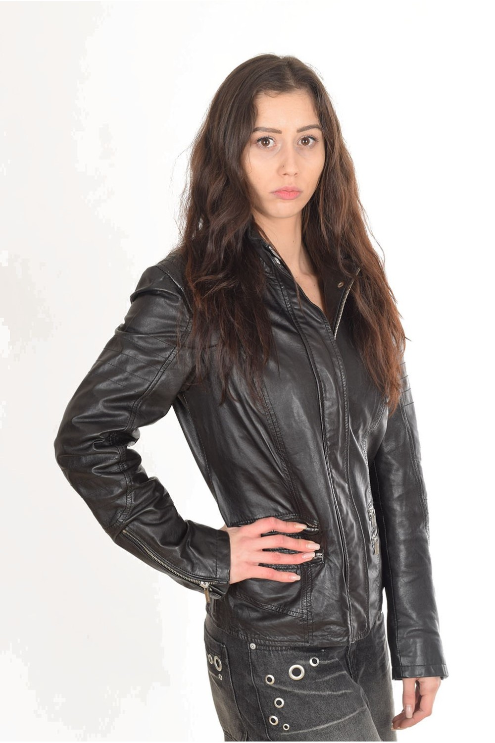 Geacă actuală neagră din piele naturală
