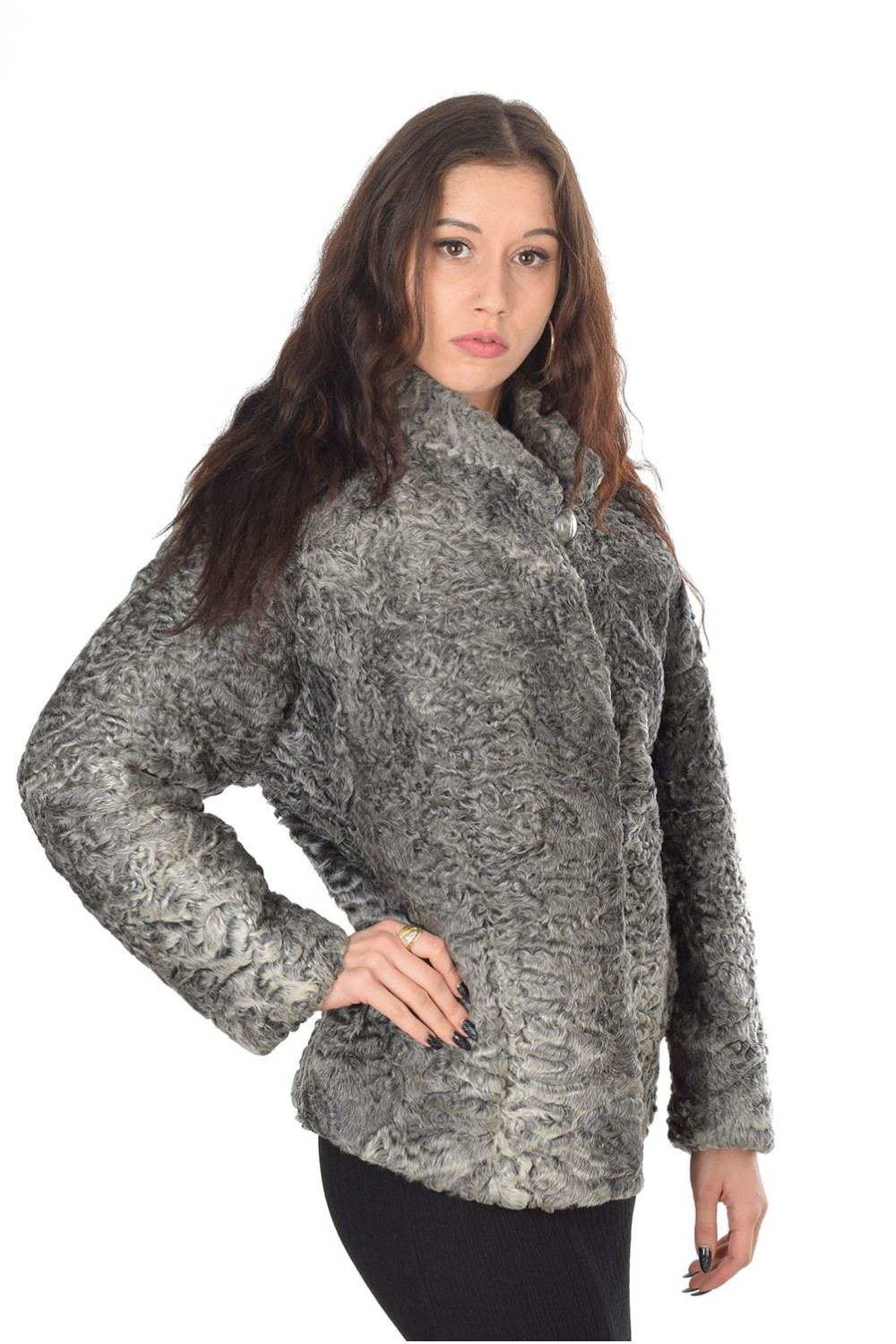Palton cochet gri de astrahan