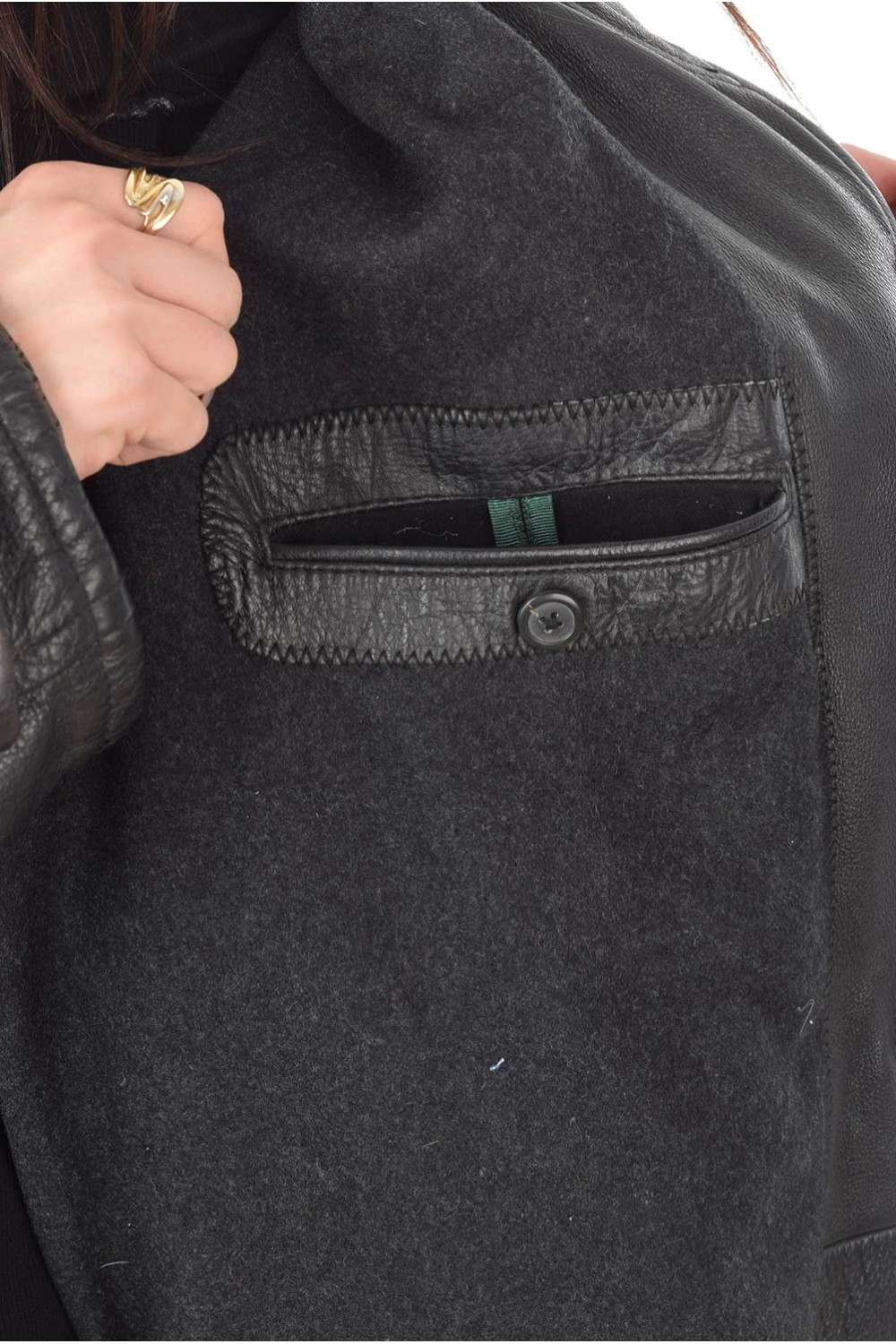 Geacă . Bust: 132 cm. Lungime: 90 cm. Talie: 124 cm. Umeri: 53 cm. Distanta dintre umeri este măsurată de la cusătură la cusătură mâneci. Lungime mânecii: 61 cm.