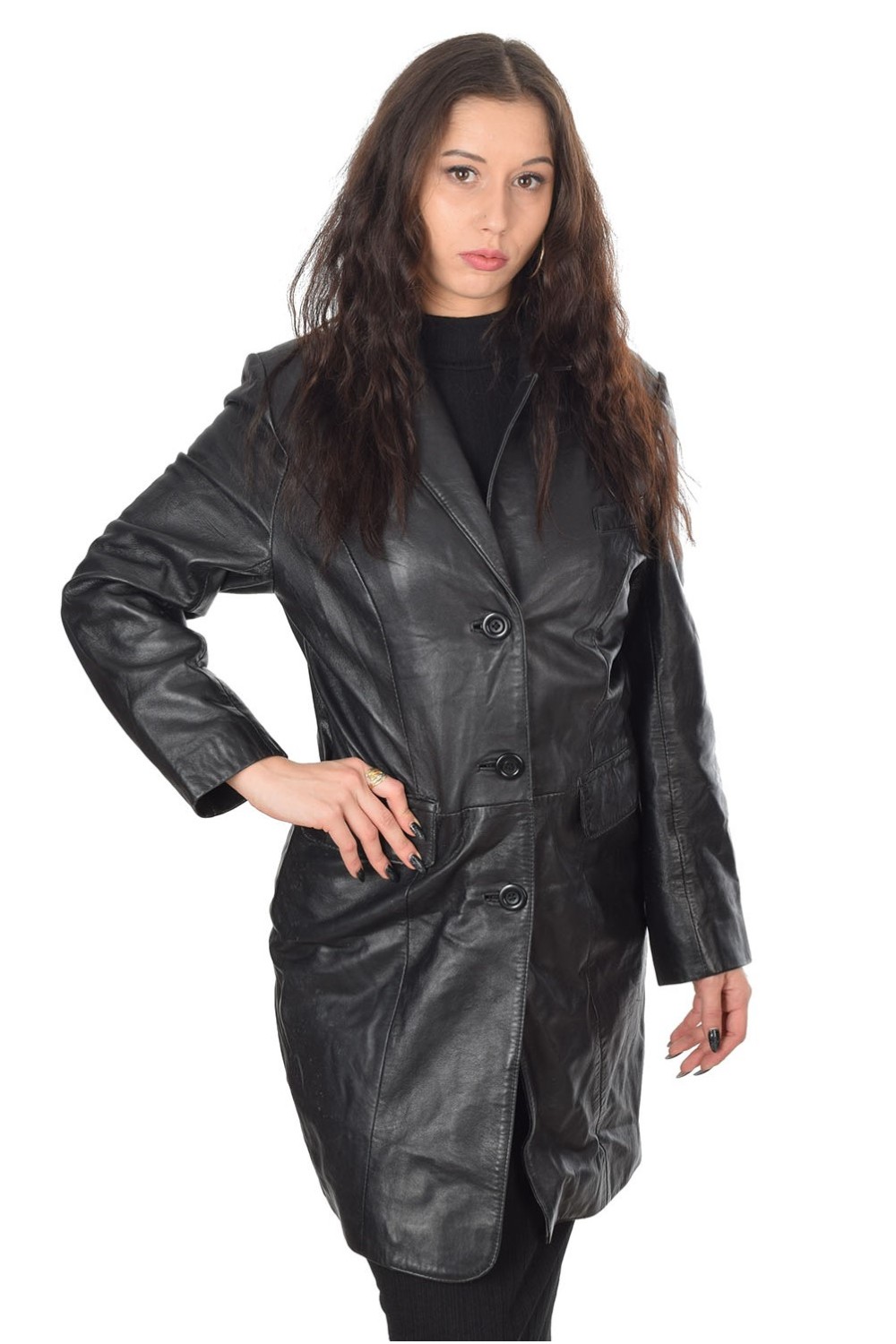 Geacă elegantă neagră din piele naturală