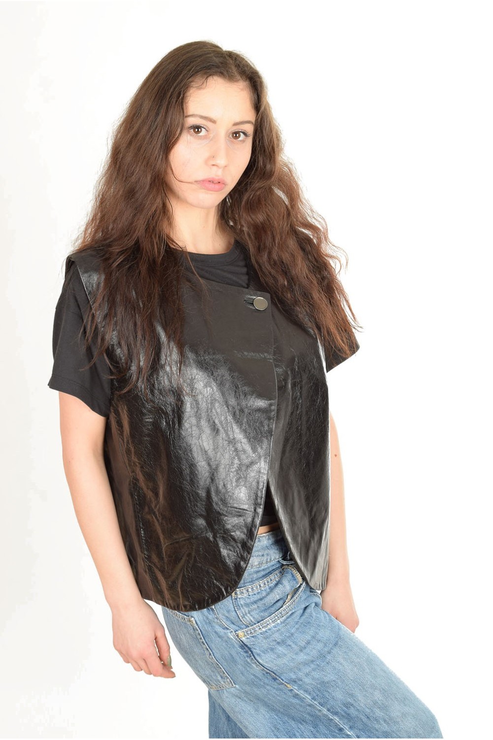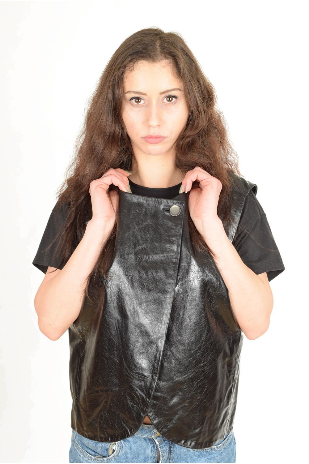 Vestă extravagantă din piele naturală