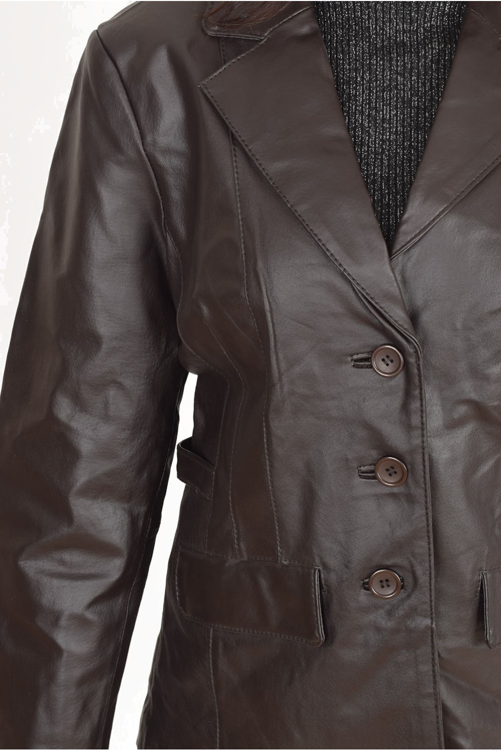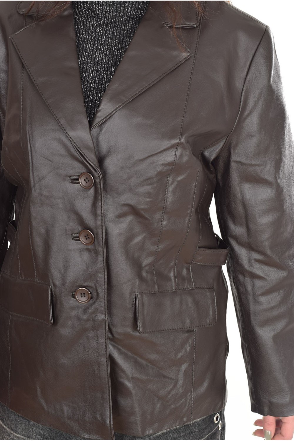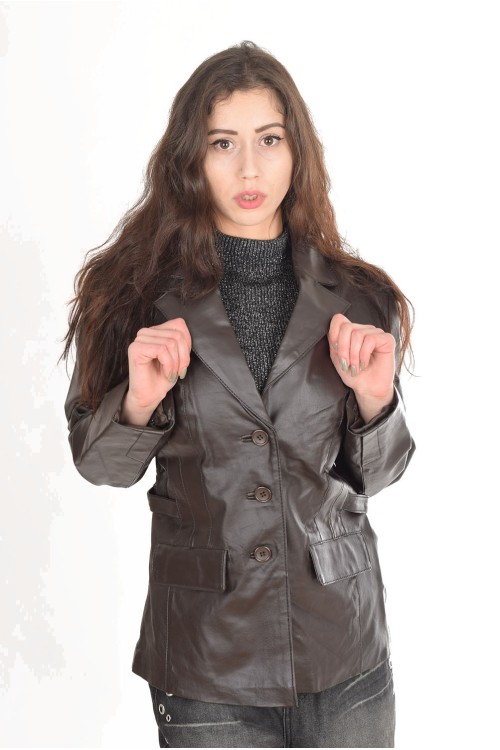 Geacă elegantă maro închis din piele naturală