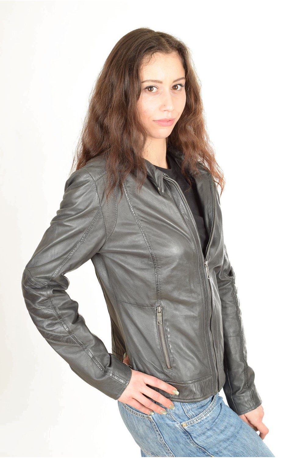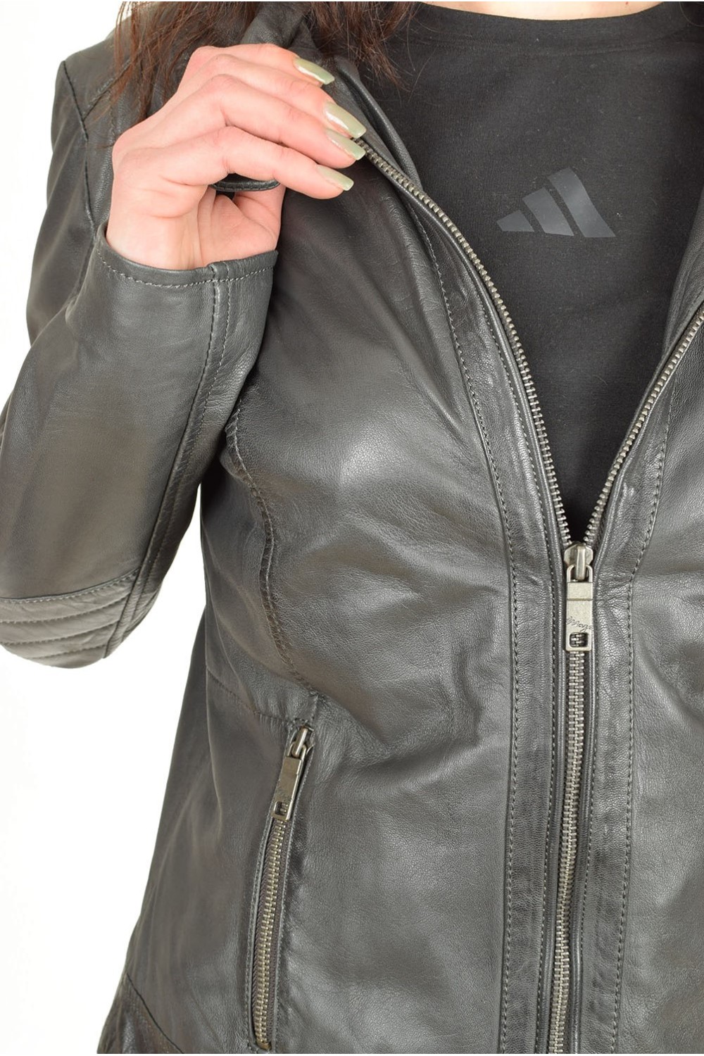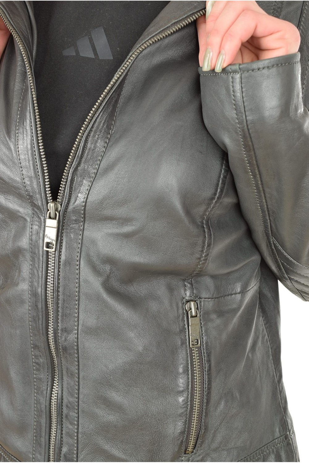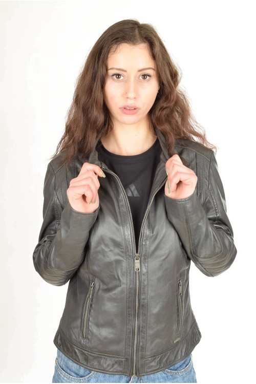 Geacă sportiva gri din piele naturală