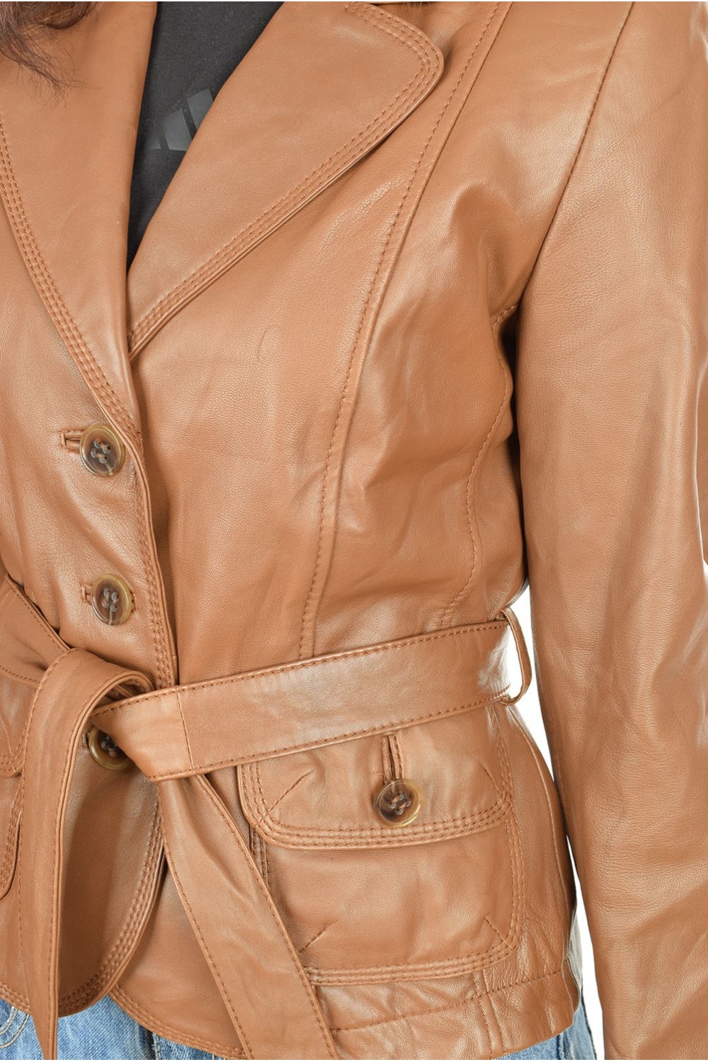 Geacă elegantă brună din piele naturală