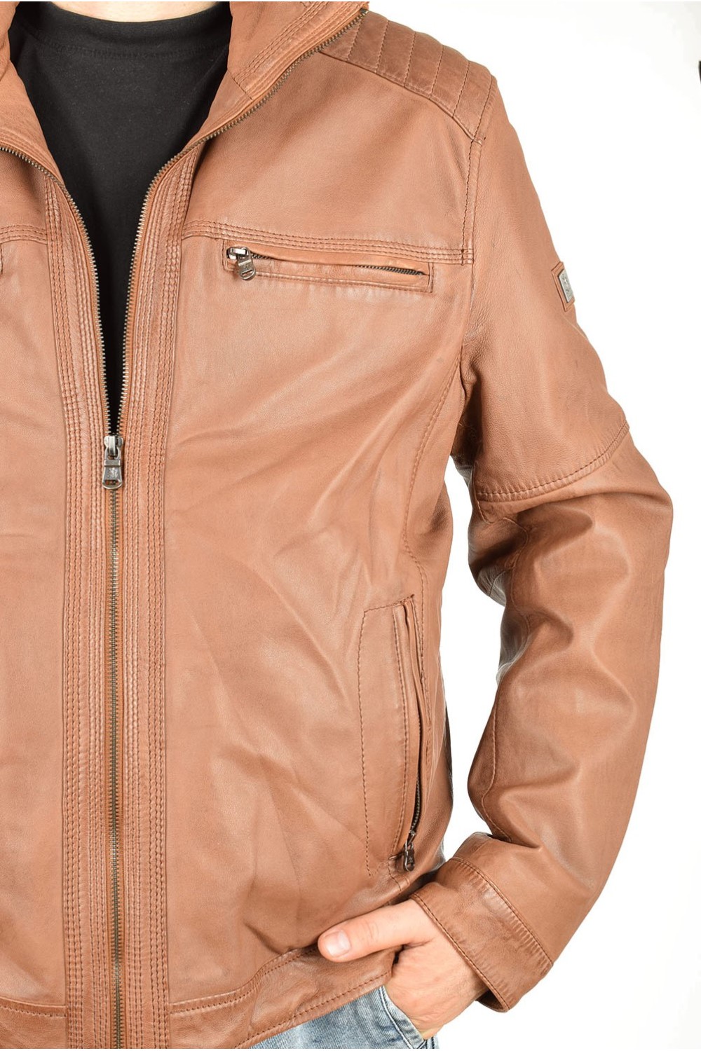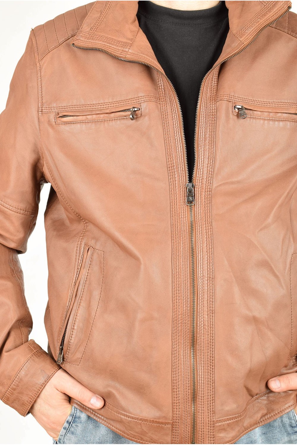 Geacă clasic brună din piele naturală