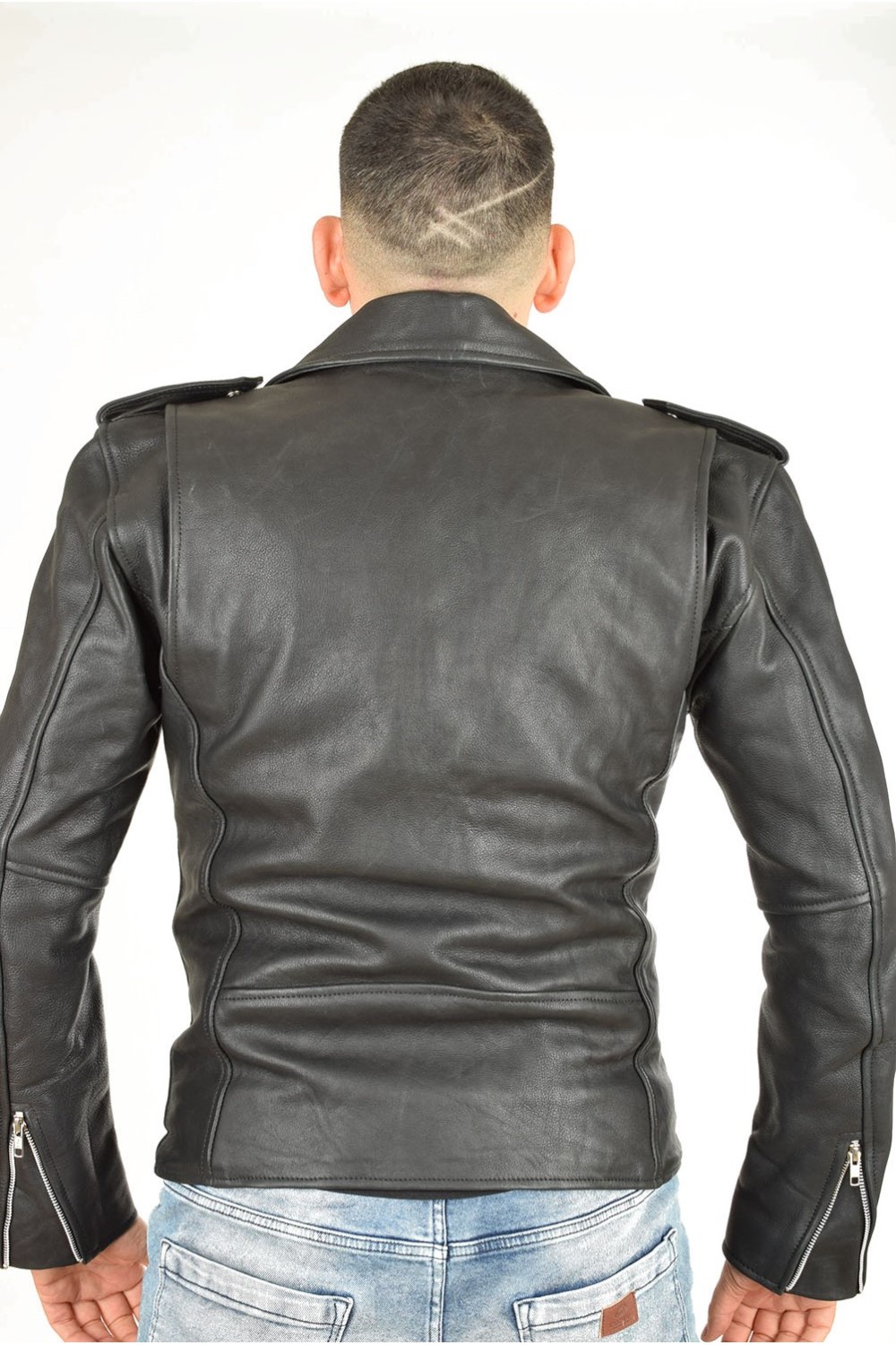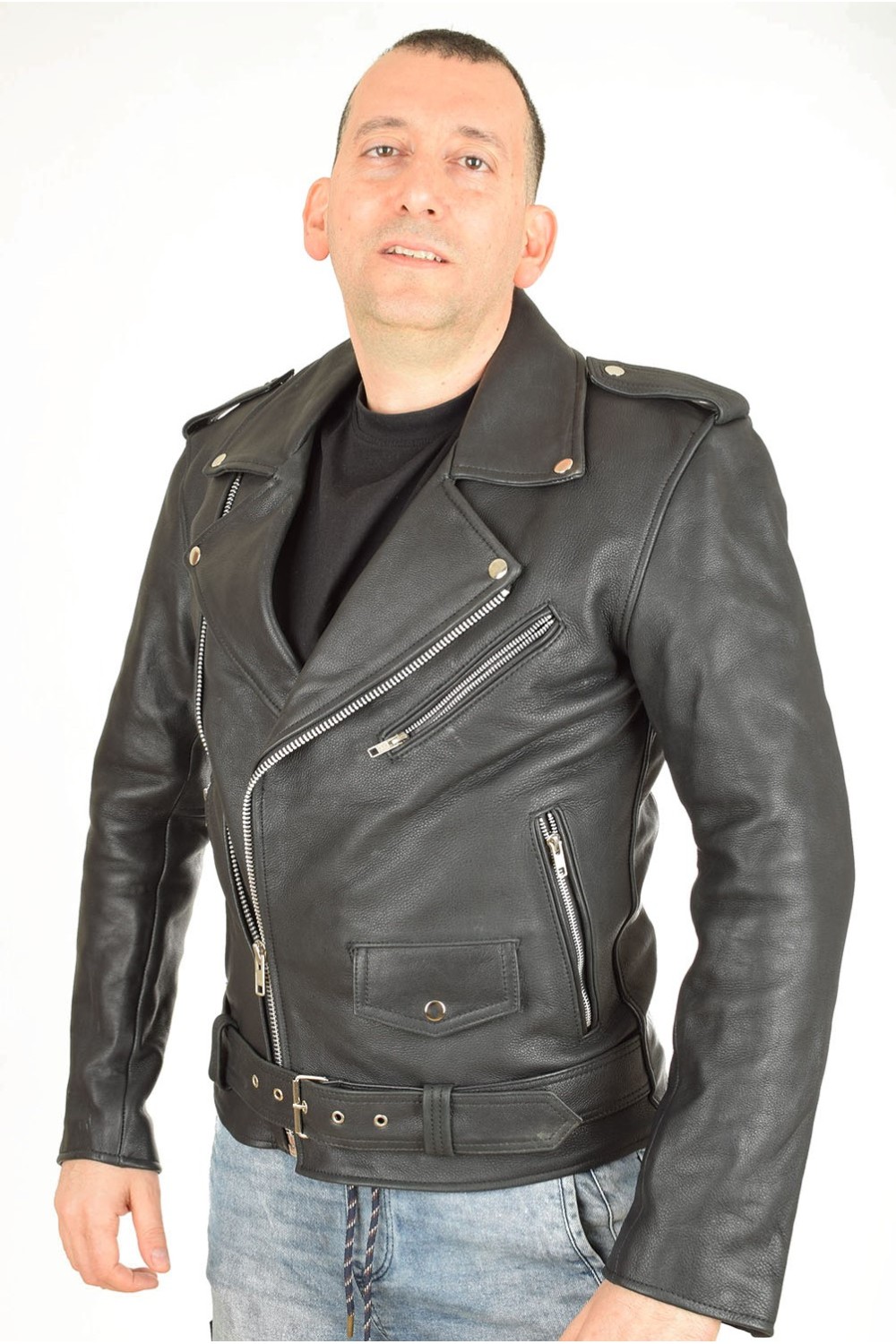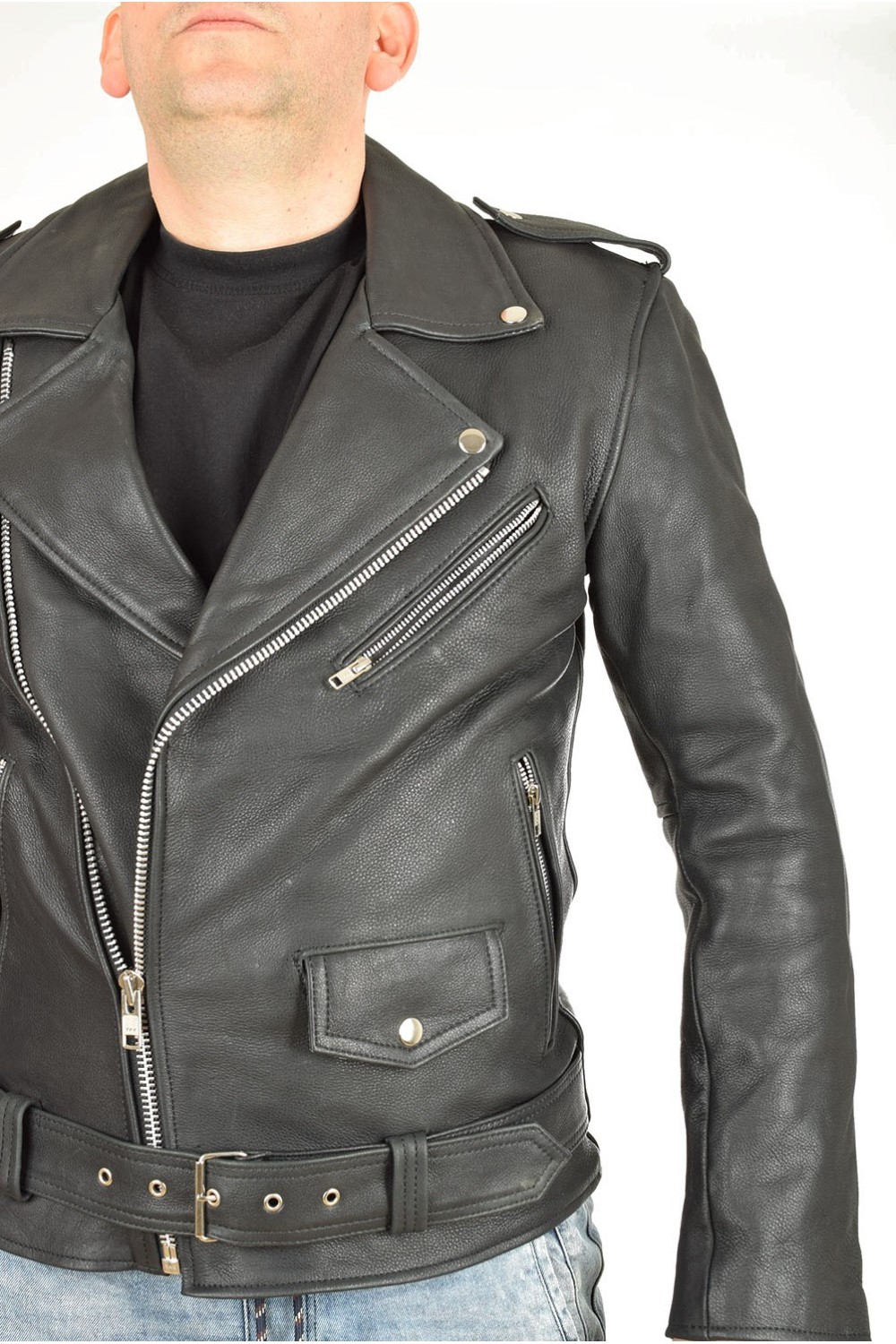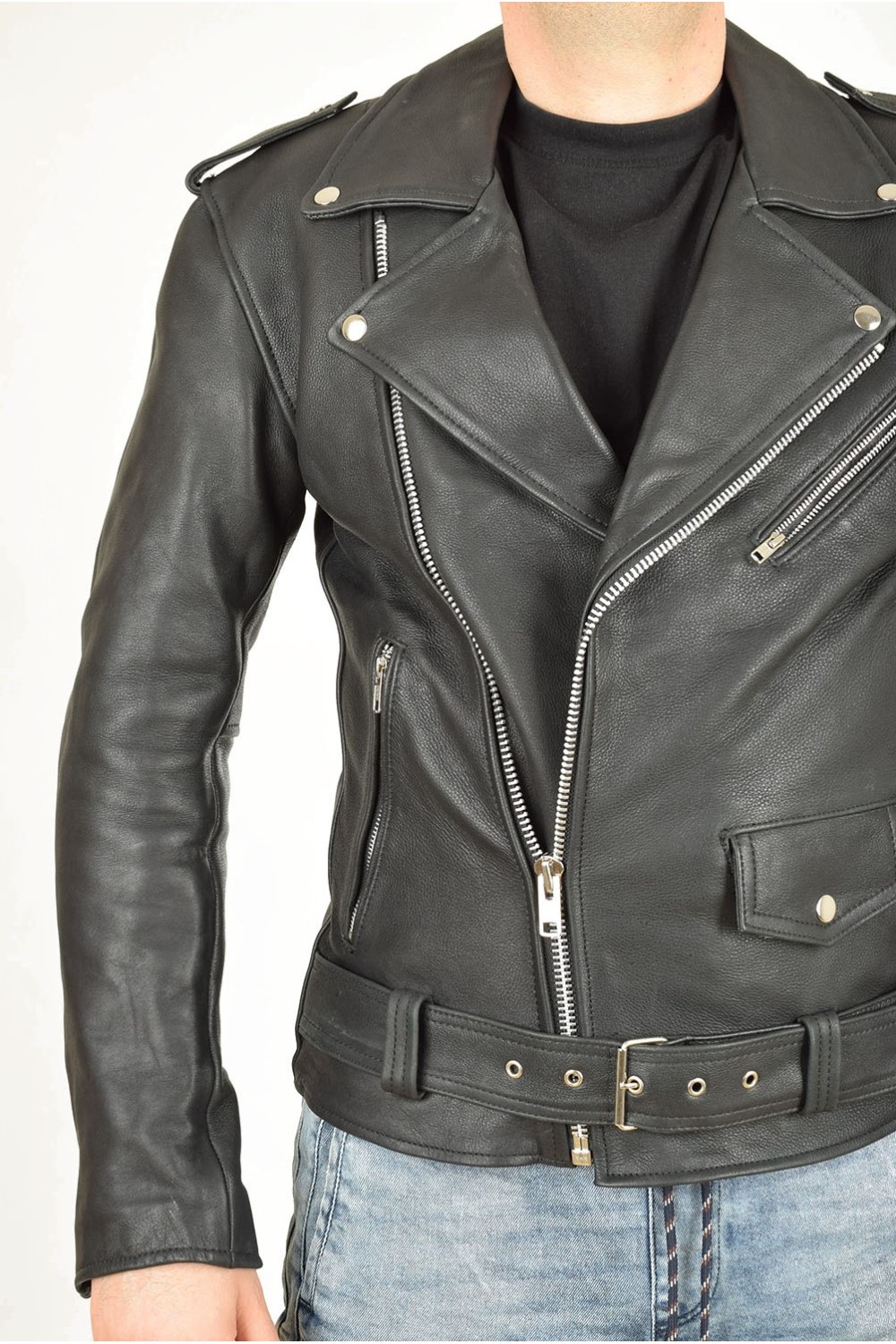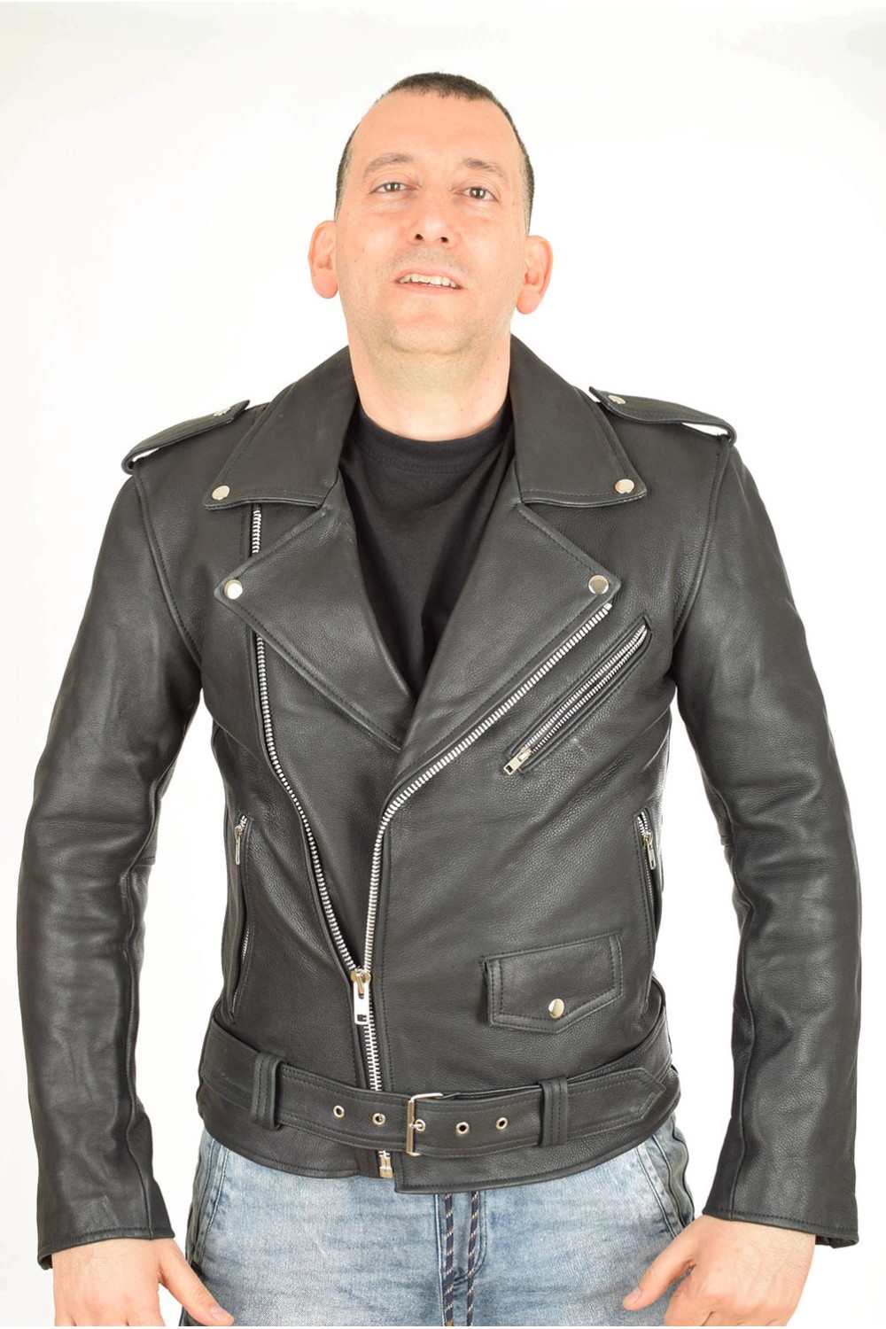 Geacă neagră biker din piele naturală