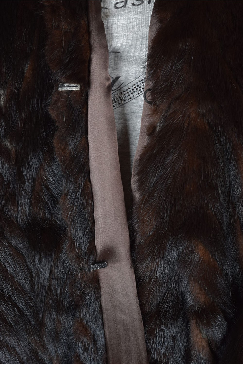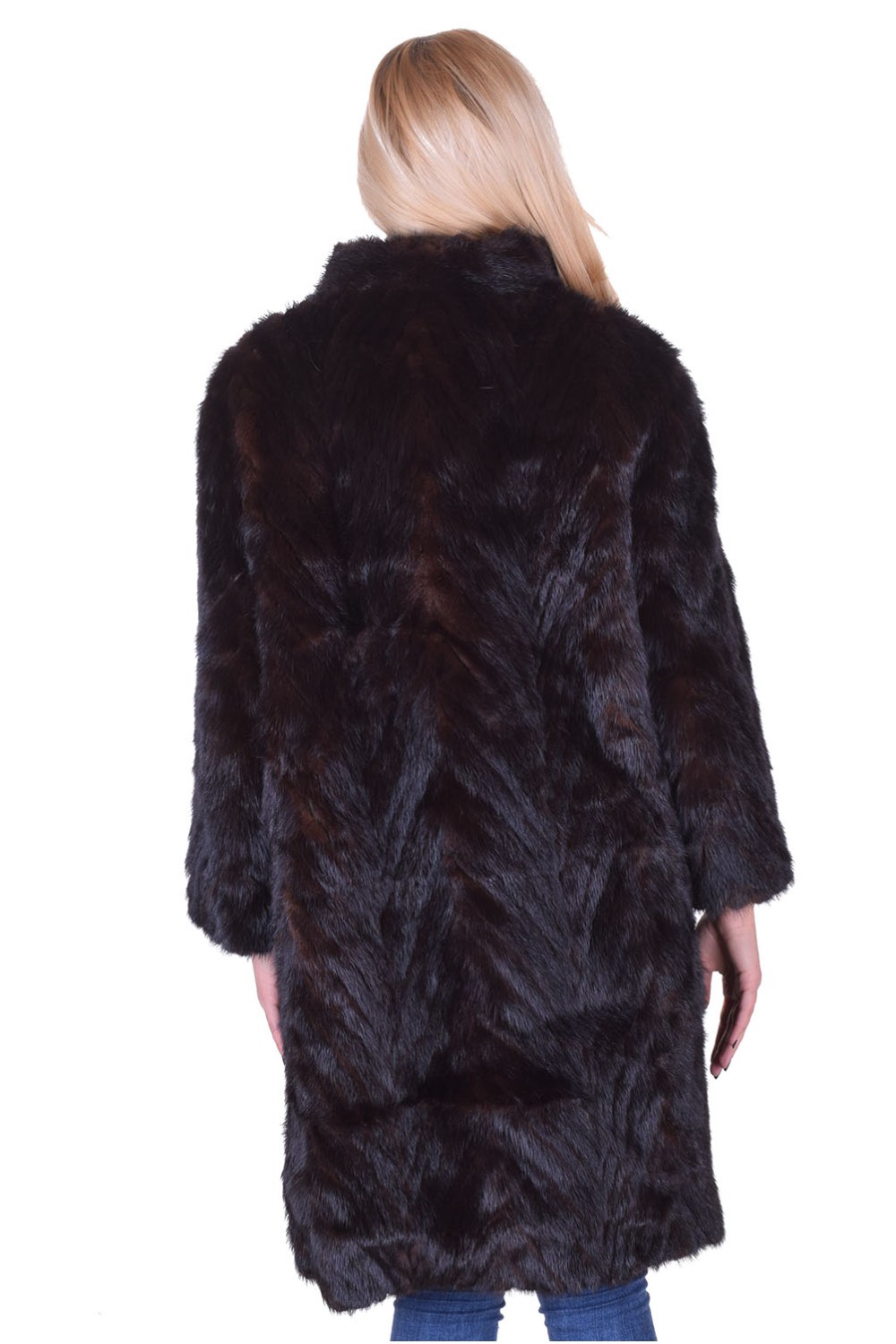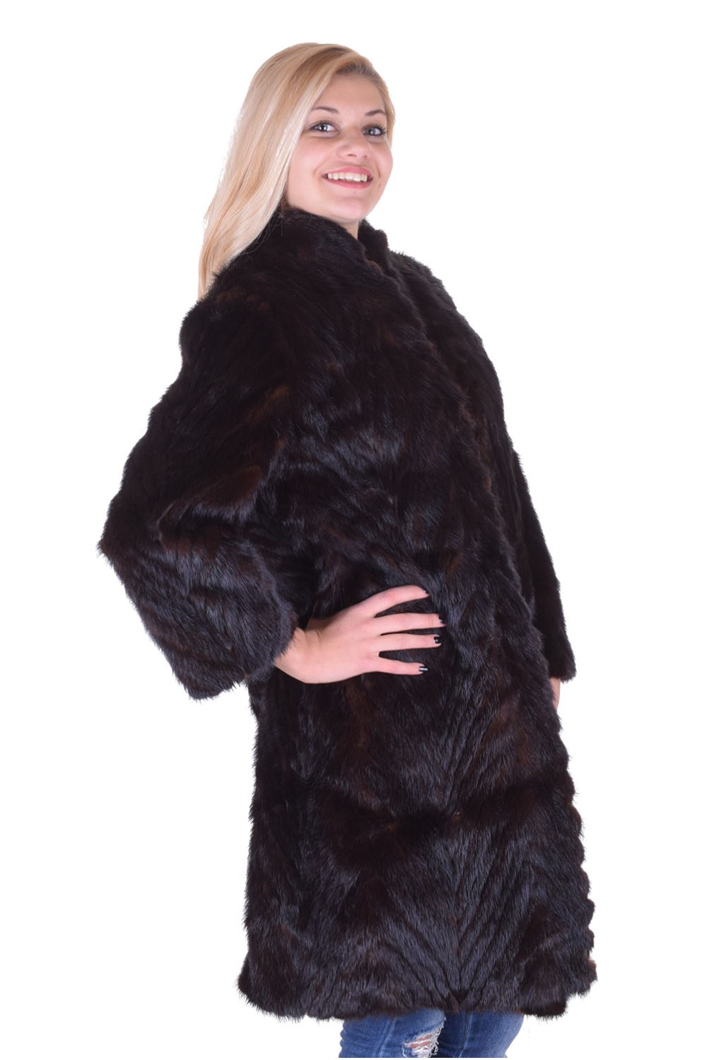 Palton lung din nurcă cu două buzunare în fața și nasturi. Bust: 108 cm. Lungime: 83 cm. Talie: 112 cm. Șold: 120 cm. Umeri: 48 cm. Distanta dintre umeri este măsurată de la cusătură la cusătură mâneci. Lungime mânecii: 55 cm. Modelul este pentru înălțime de 172 cm.| Despre produsul | |